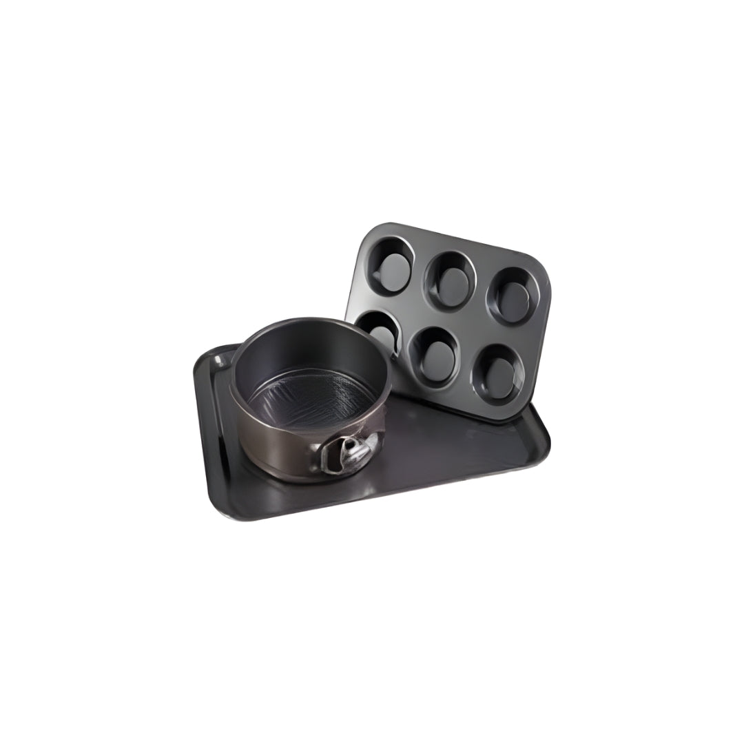 Casa Collection Italy – 3-Piece Non-Stick Bakeware Set | Round Cake Mold, 6-Cup Muffin Tray, Rectangular Pan | Carbon Steel, Durable & Easy to Clean, PFOA-Free
