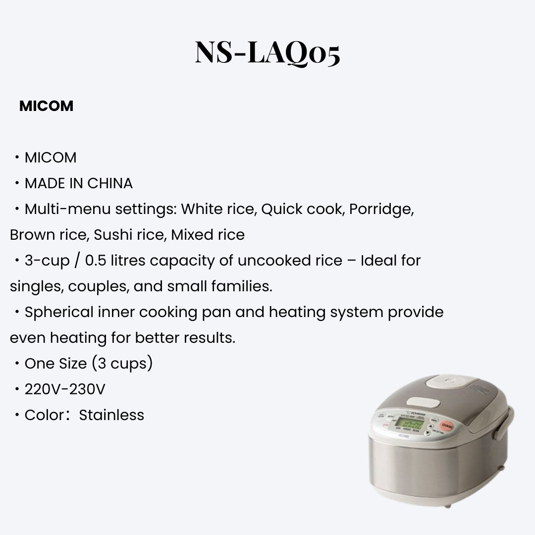 ojirushi NS-LAQ05 - 0.5L Electronic Micom Rice Cooker & Warmer – Stainless Steel | Compact Japanese Rice Cooker